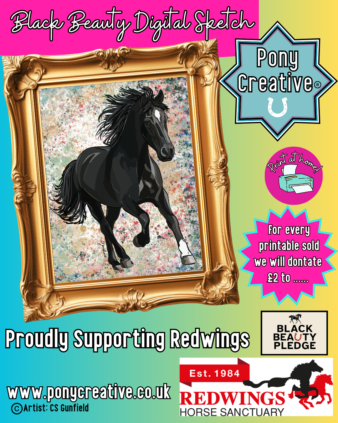 With each print sold, a donation will be made to Redwings Horse Sanctuary, helping to care for and protect horses in need.